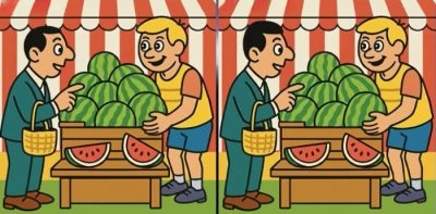 Ak sa vám prvý pokus nepodarí, môžete použiť nápovedu. Medzi veľkým množstvom rovnakých klobúkov musíte nájsť čudný / koláž s fotografiami pixabay.