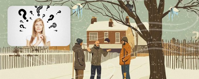 Na obrázku vidíte troch upratovačov, ktorí sa v zime zišli na dvore pod stromom a rozprávali sa. Nikto zo spolubesedníkov si ani nevšimol, že jednému z nich hrozí vážne nebezpečenstvo.