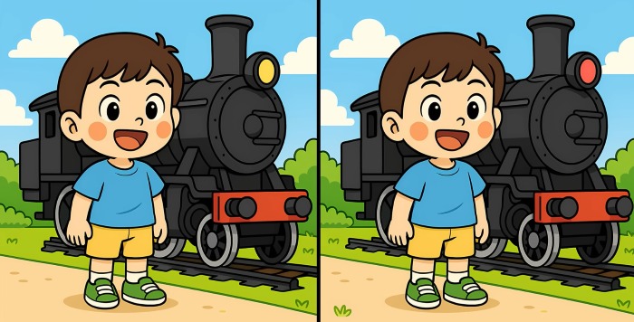 Tak čo, ste pripravení na ďalšiu výzvu? Pozorne si prezrite dva obrázky chlapca stojaceho vedľa parného vlaku. Na prvý pohľad môžu vyzerať rovnako, ale sú tu tri malé rozdiely. Myslíte si, že ich všetky nájdete za 29 sekúnd? Skúste to a otestujte svoju ostrosť zraku!