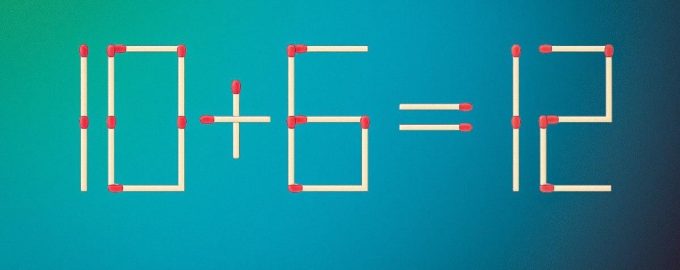 Nižšie uvidíte obrázok, na ktorom je pomocou zápaliek rozložená rovnosť 10+6=12. Je zrejmé, že to nie je matematicky správne. Musíte ju opraviť.
