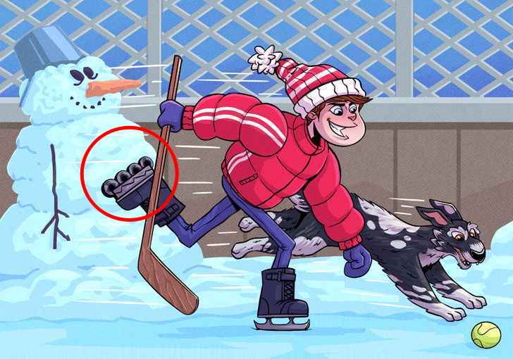 Na obrázku vidíme chlapca, ktorý korčuľuje na ľade, a vedľa neho beží pes. Na prvý pohľad sa môže zdať, že na obrázku nie je žiadna chyba, ale v skutočnosti to tak nie je. Ak sa pozriete pozorne, zistíte, že niektoré veci boli nakreslené nesprávne.