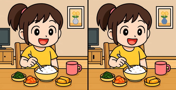 Takže ste pripravení na zadanie? Pozorne si prezrite dva obrázky dievčaťa pri stole. Na prvý pohľad môžu vyzerať rovnako, ale sú medzi nimi tri malé rozdiely. Myslíte si, že ich všetky nájdete za 49 sekúnd? Skúste to a otestujte si svoju ostrosť zraku!