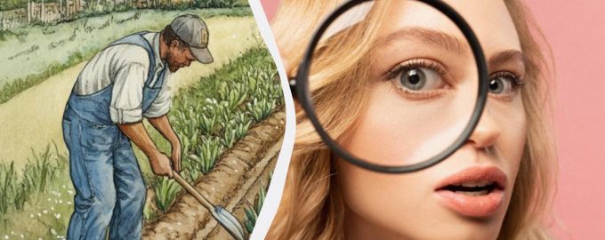 Hneď uvidíte pole pri malebnej dedinke a troch mužov, ktorí pracujú pod holým nebom. Musíte určiť, čo je na tomto obrázku nesprávne.